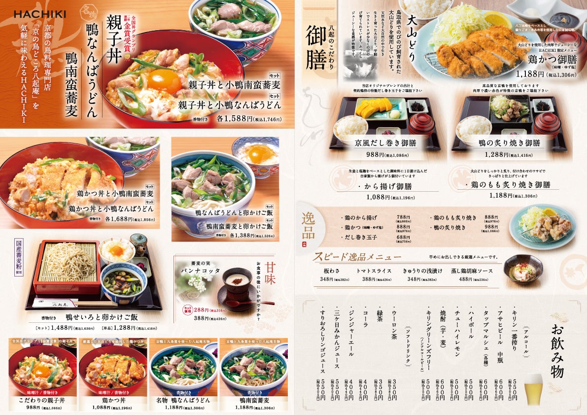 『HACHIKI 八起庵 新横浜店』限定メニュー