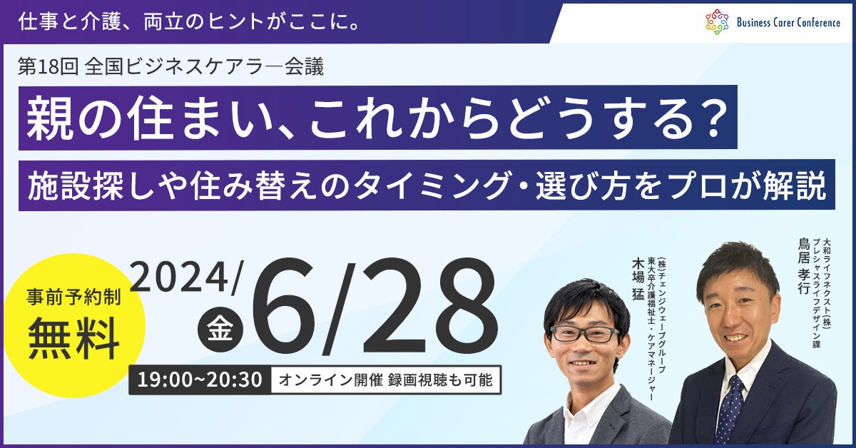 6月28日(金)、現役ビジネスパーソンと各分野のプロが結集するオンラインセミナー『全国ビジネスケアラー会議 仕事と介護、両立のヒントがここに。』開催のお知らせ