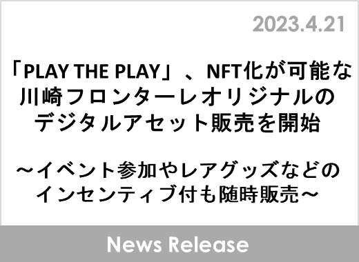 「PLAY THE PLAY」、NFT化が可能な川崎フロンターレオリジナルのデジタルアセット販売を開始