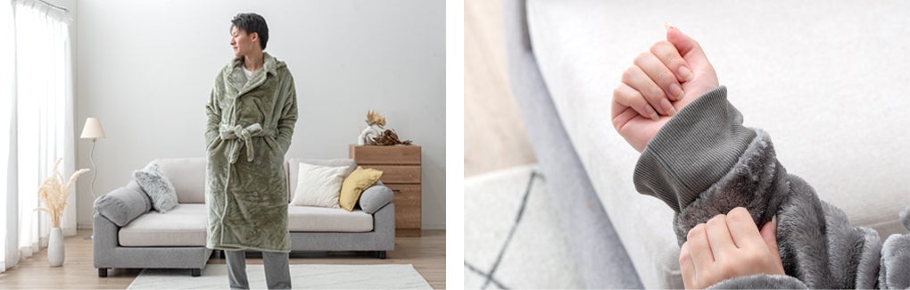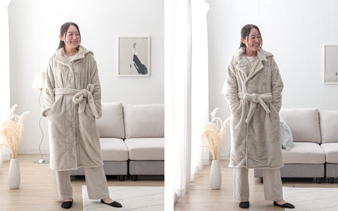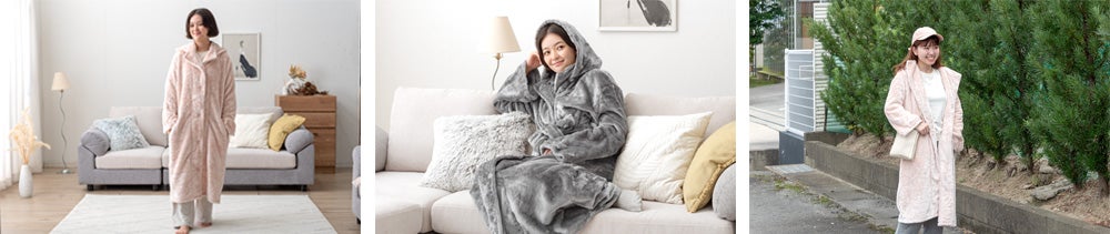 タンスのゲンより保温性にも優れた超高密度生地の“着る毛布”で全身ぽっかぽか!コンビニなどのちょっとした外出にも使える2タイプのデザインで様々な着こなしを