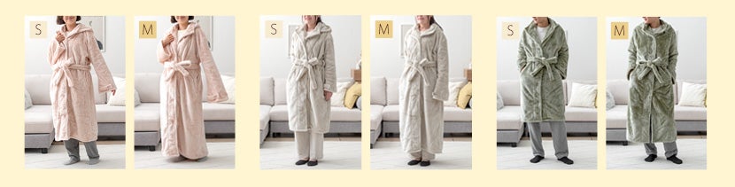 本製品は室内だけでなくちょっとした外出にも使えるデザインのベルスリーブタイプとPコートタイプの2タイプからお選びいただけます。