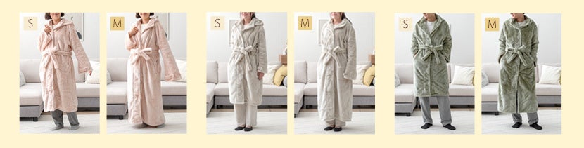 Sサイズは身長155cm~165cmの女性が着用した場合に膝下までの長さで足元までしっかりと温めます。