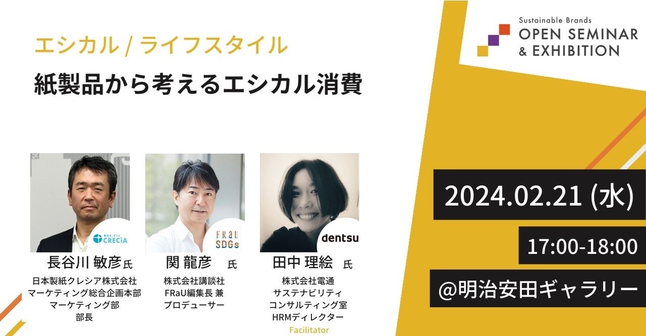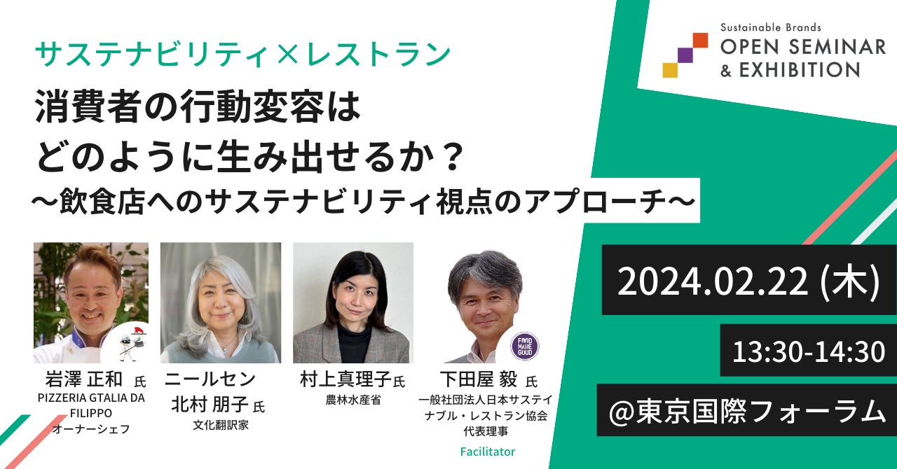 株式会社 博展は、主催する「サステナブル・ブランド国際会議2024 東京・丸の内(以下、「SB ‘24 東京・丸の内」)」 の開催期間にあわせ、2024年2月21日(水)、22日(木)に東京・丸の内にて、無料オープンセミナーを開催いたします。