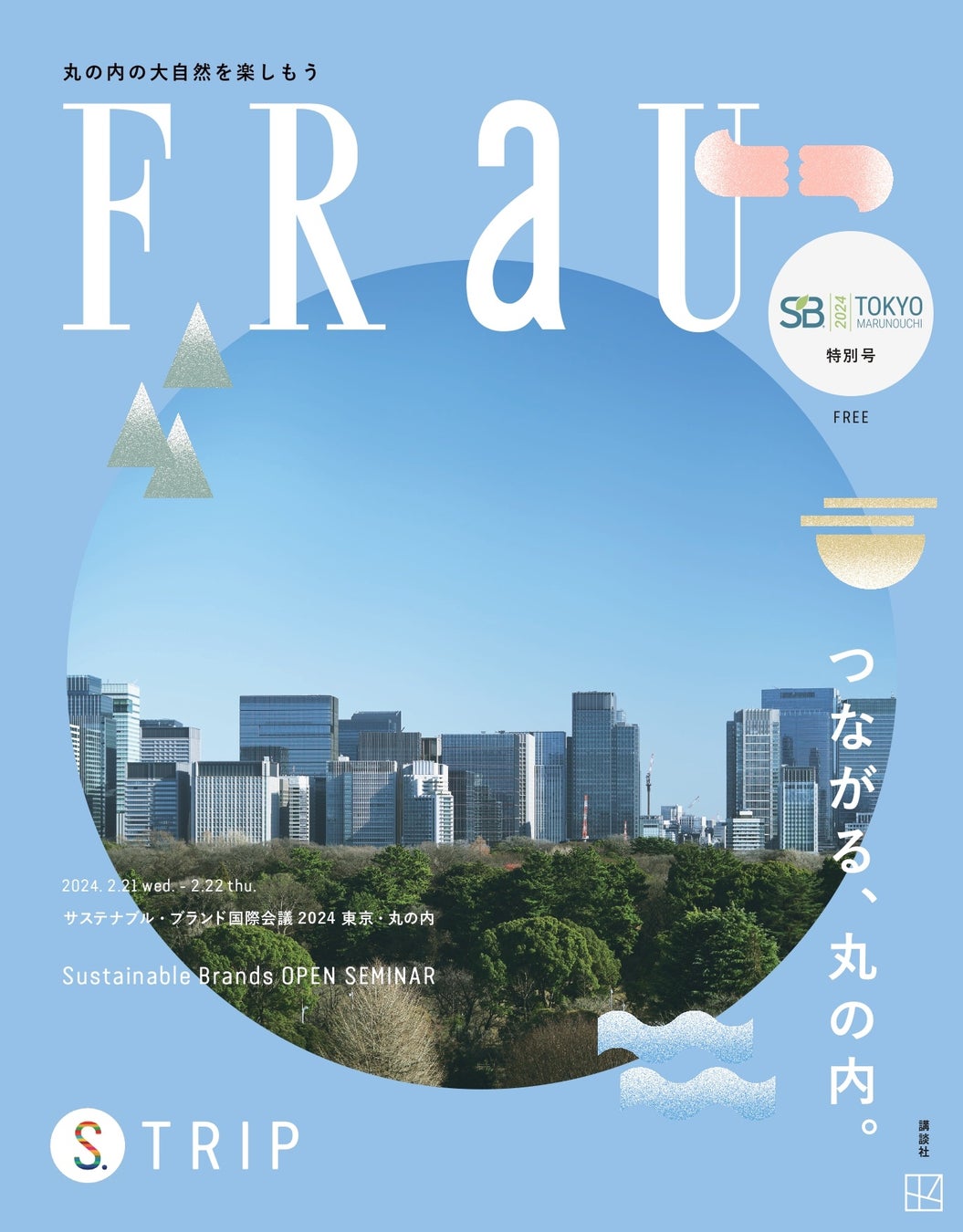 今回、OPEN SEMINAR & EXHIBITIONを企画するにあたり、「SB ‘24 東京・丸の内」のメディアパートナーであるFRaU(講談社 刊行)とコラボレーションし、OPEN SEMINAR& EXHIBITIONの企画と、丸の内エリアのサステナビリティの取組を紹介する『FRaU S-TRIP』特別号を発行いたしました。