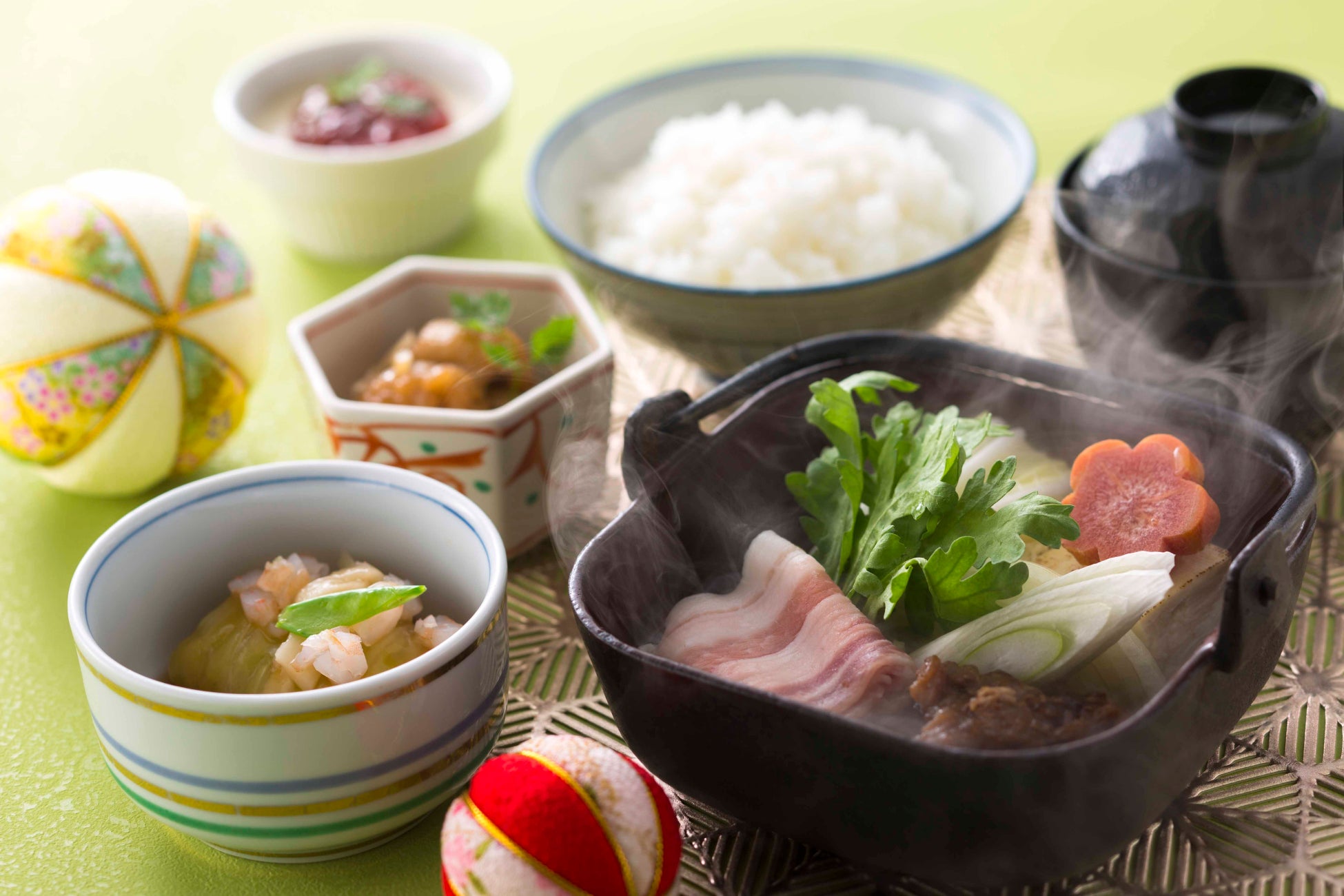 海老そぼろ餡をかけたロールキャベツのおでんに加え、メインには豚バラや牛スジ煮を冬野菜や焼き豆腐と愉しむ小鍋が登場。ほっこり身も心も温めて元気な一年を!
