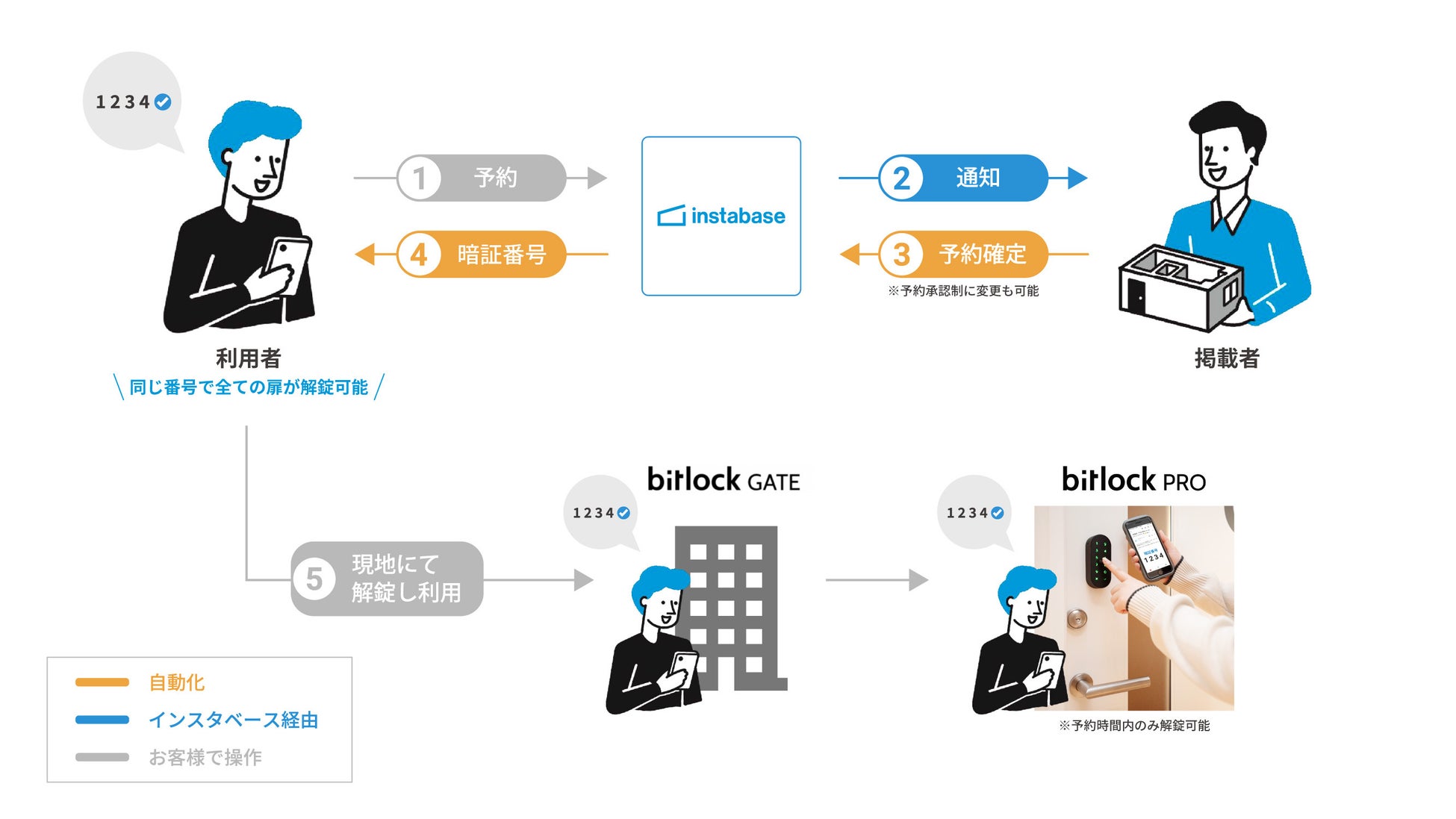 この度の連携では電子制御ドアにも対応が可能になったことで、マンション共用部の貸出、自社オフィスの会議室の貸出、商業施設の休日貸出など、建物の入口から使用するお部屋まで、鍵の受け渡しの手間がない、無人運営を実現いただくことができます。