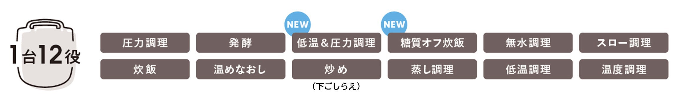- 3.「低温&圧力調理」と「糖質オフ炊飯」が新登場!1台12役の調理方法