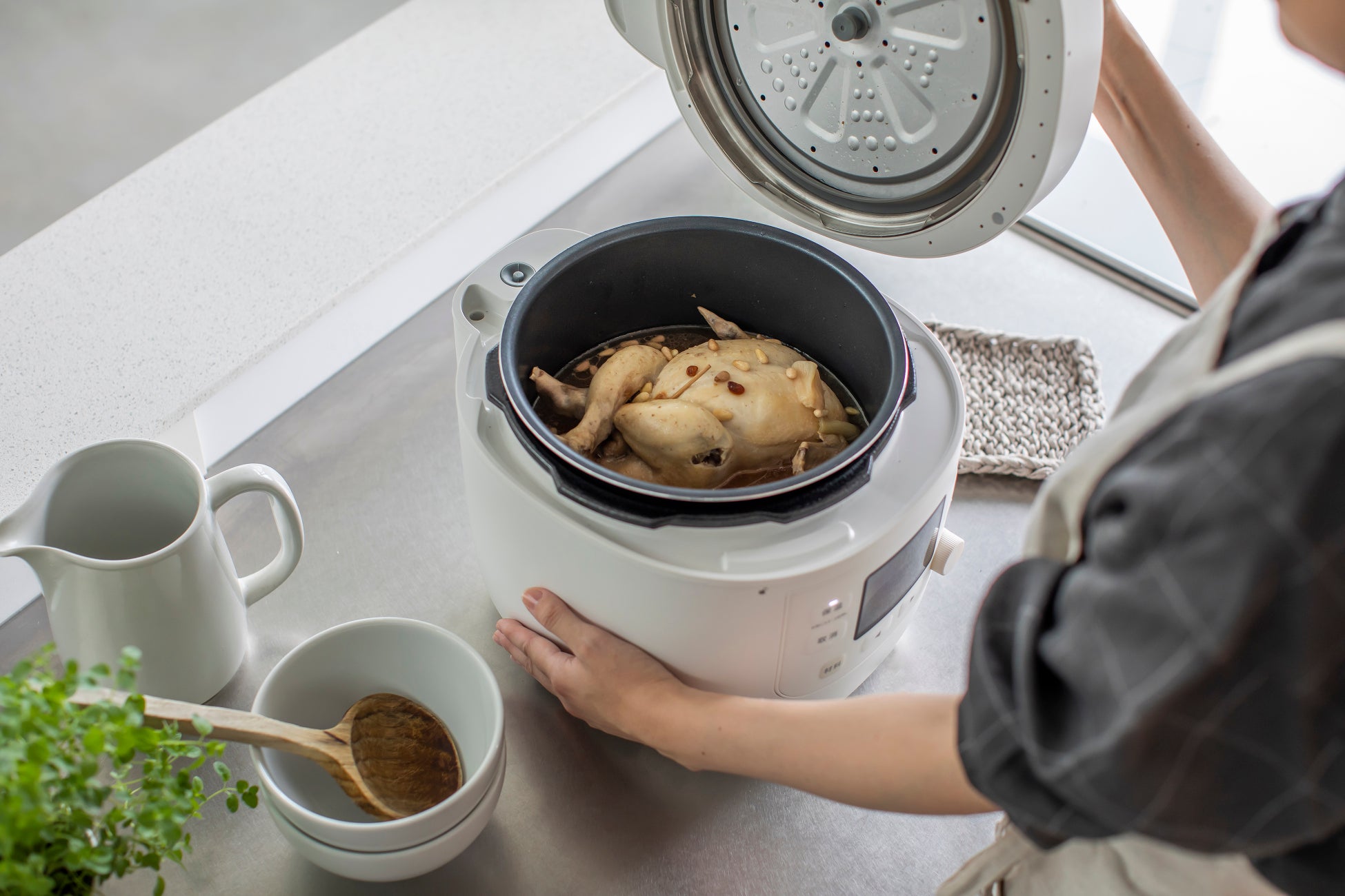 5Lの大容量サイズで、最大6人分の料理を一度に作ることができるため、大人数のご家庭にはもちろん、作り置きにも便利。丸鶏を使ったサムゲタンやローストチキンなど、食材をまるごと使った料理にも対応可能で、さらに料理の幅が広がります。