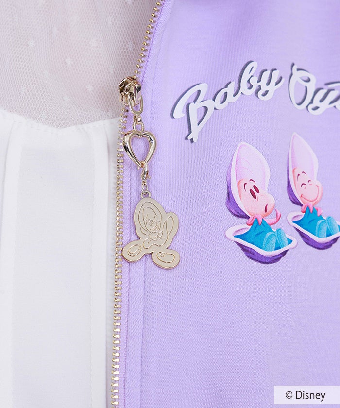 ディズニー・アニメーション映画『ふしぎの国のアリス』の物語に登場する「ヤングオイスター」を左胸にプリントであしらったパーカーです。