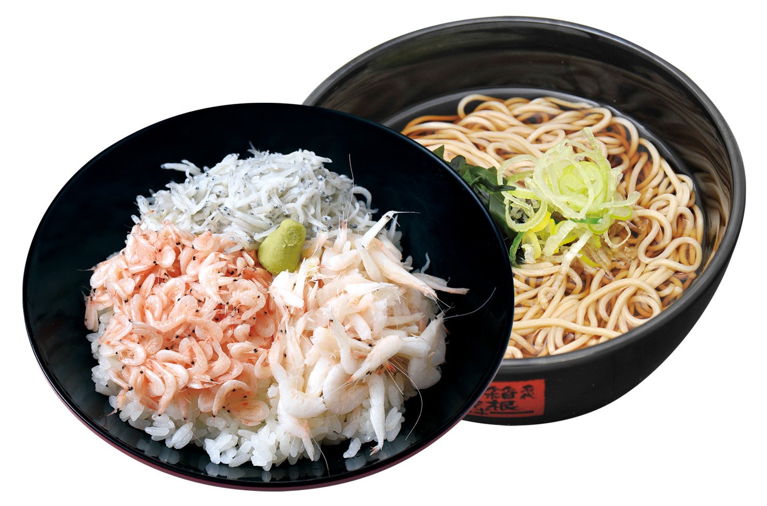「桜海老のミニかき揚げ天とドデカ肉団子天(そば・うどん)」をはじめ、「鶏つくねハンバーグの九条葱そば(うどん)」、「釜揚げ三種丼セット~しらす・白海老・あきあみ海老~(そば・うどん)」の全3種類をご用意いたしました。