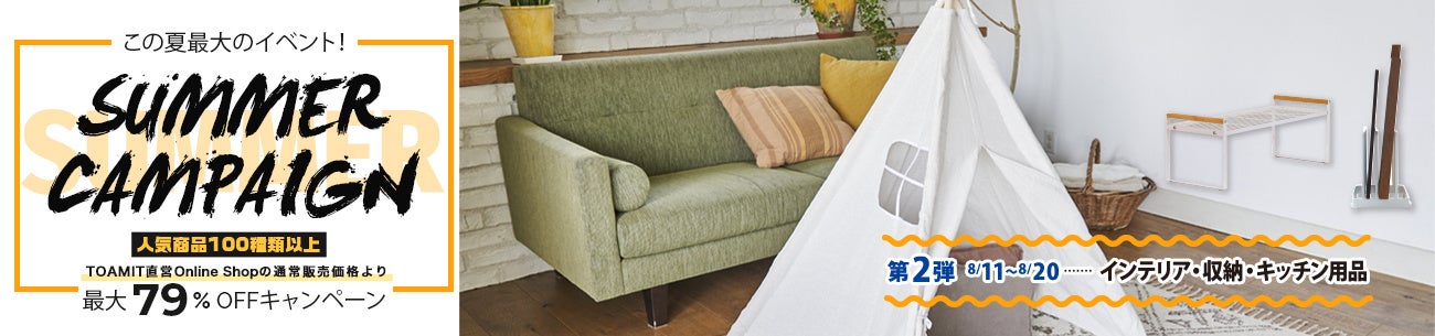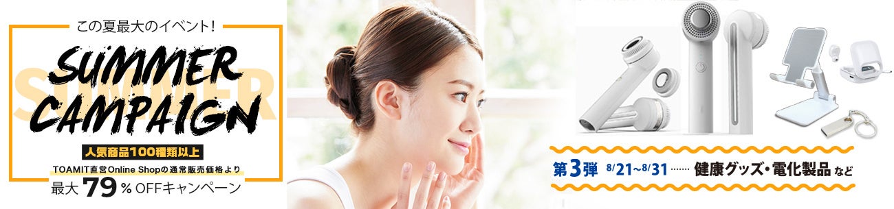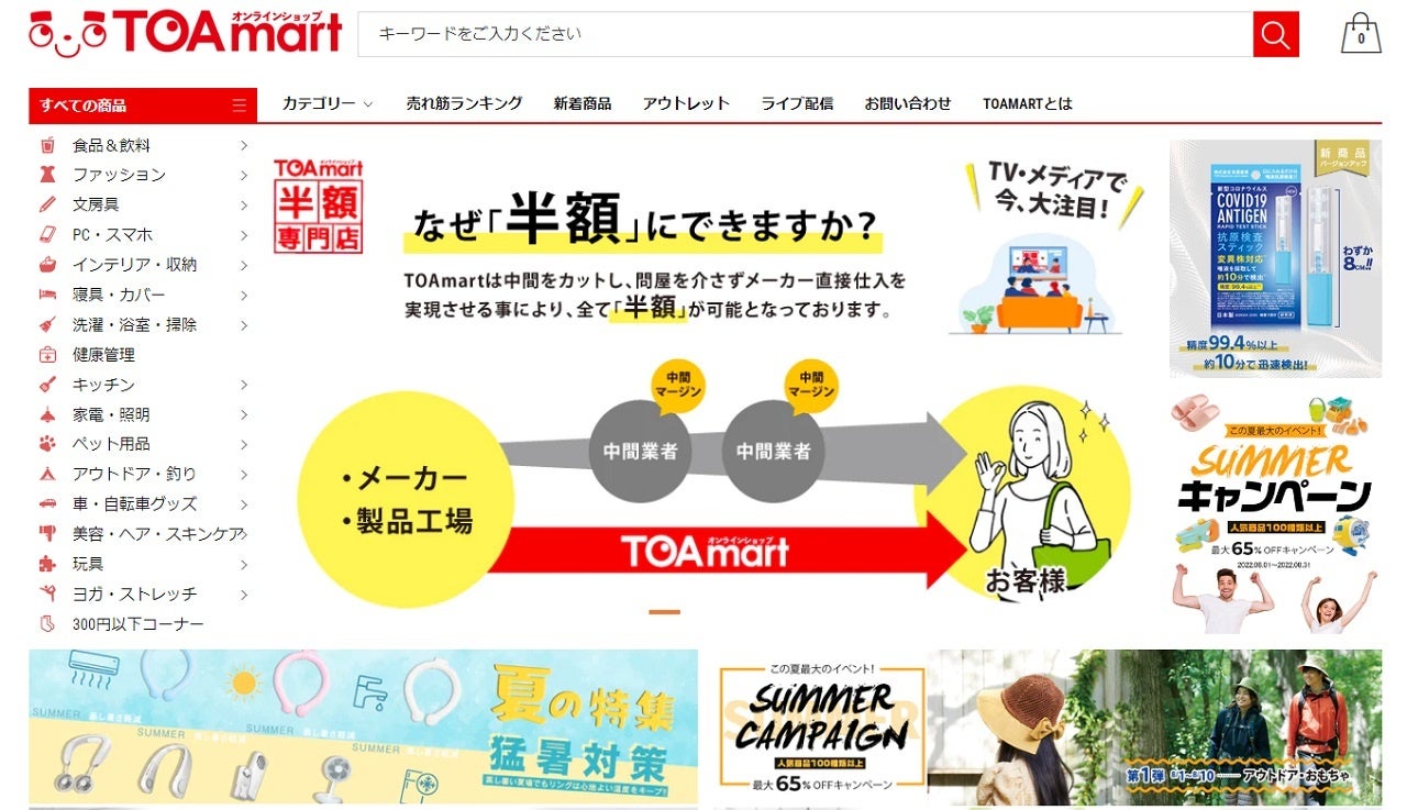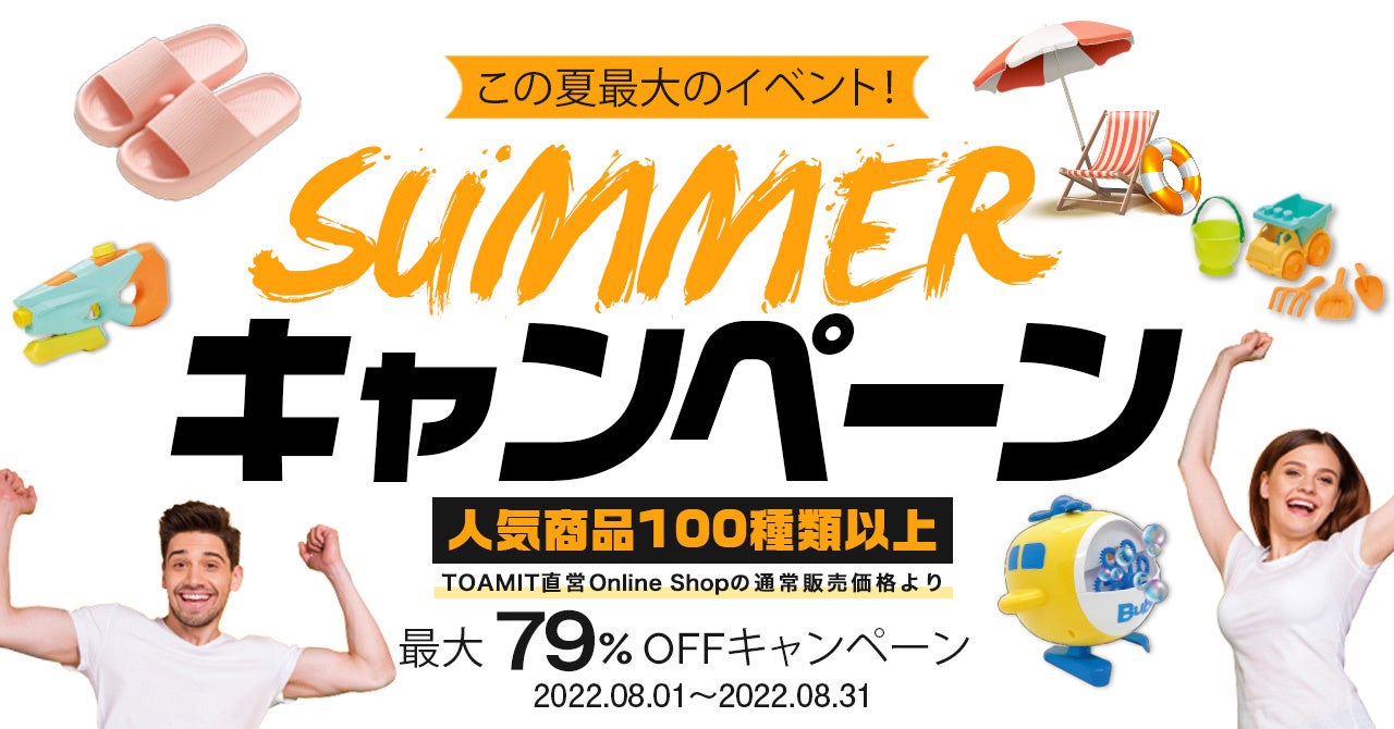 激安通販TOAmart オンラインショップでは、「毎日のお買い物時間の短縮とお買物費用の節約の付加価値をお客様に今こそ提供したい」という思いから、SUMMER キャンペーンイベントを実施しています。