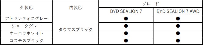 「BYD SEALION 7」は、後輪駆動の「BYD SEALION 7」と四輪駆動の「BYD SEALION 7 AWD(ビーワイディー シーライオン エーダブリュディー)」の 2グレードで展開をいたします。全国メーカー希望小売価格は、BYD SEALION 7が495万円(税込)、BYD SEALION 7 AWDが572万円(税込)です。さらに発売記念として、2025年6月30日(月)までに「BYD SEALION 7」をご成約、ご登録されたお客様には、ドライブレコーダーやETC車載器などの人気アイテムを無償でプレゼントいたします。