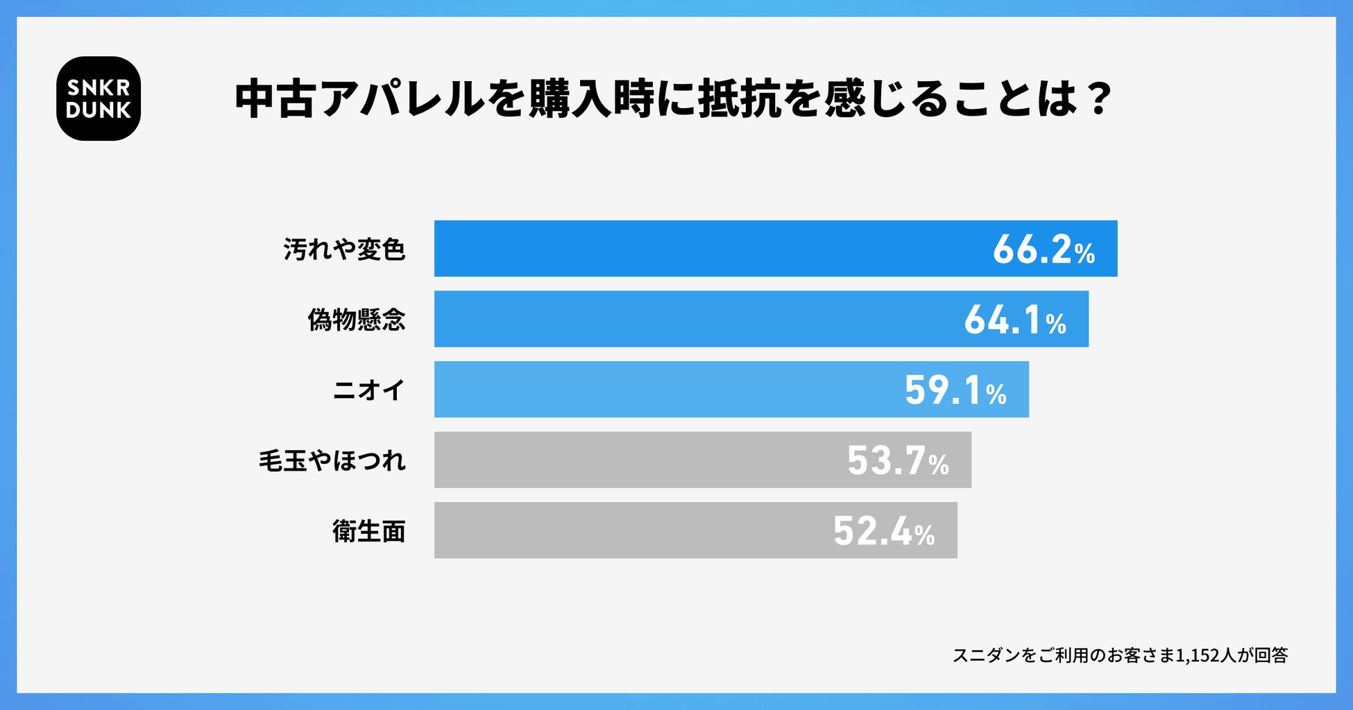 購入をためらう具体的な理由としては、「汚れ・変色」が気になるが最多の66.2%でした。
