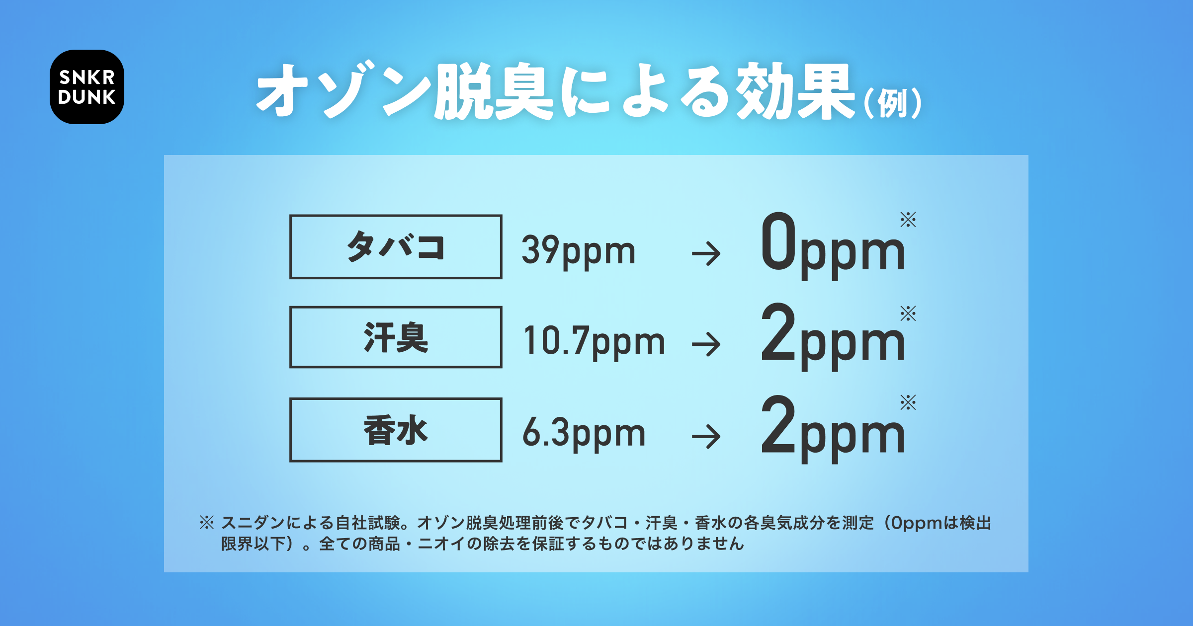 これまでスニダンでは、99.97%(※3)の鑑定精度の真贋鑑定によって「偽物の可能性」という不安を排除してまいりましたが、今回新たに「オゾン脱臭・除菌オプション」を導入することで、「ニオイ」という古着の障壁を解消し、より多くの方が安心して中古アイテムを手に取れる環境を提供することといたしました。