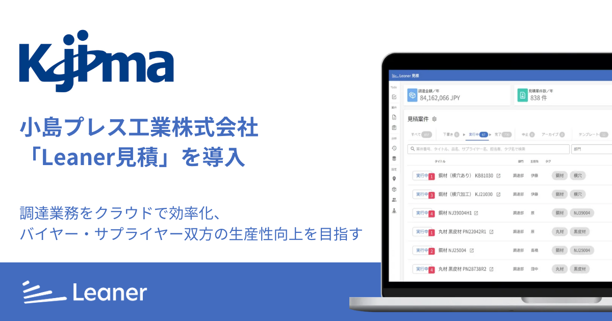 小島プレス工業株式会社が「Leaner見積」を導入、調達力強化への取り組みを開始