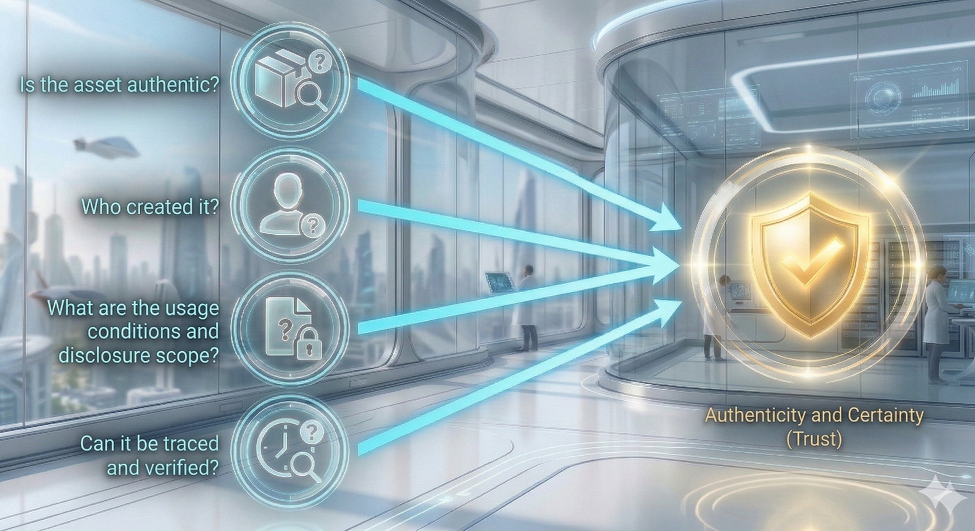 したがって、この新時代の出発点は、「資産を自動で動かすこと」だけではなく「その資産の真正性(トラスト)が確かめられること」です。
