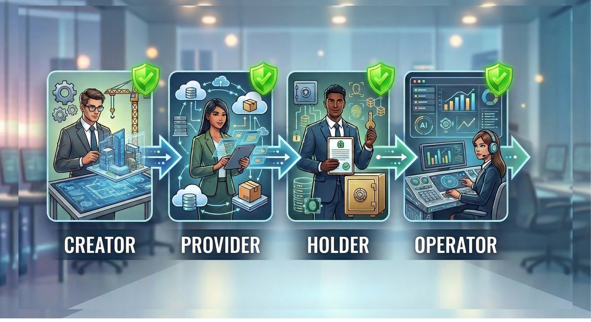 「製作者 ⇒ 提供者 ⇒ 占有者 ⇒ 運用者」などが曖昧なままでは、資産の信用は成立しません。とりわけ、この新時代には、資産そのものだけでなく、その資産に紐づく属性情報、評価情報、その他更新情報まで含めて扱われるため、各主体の特定ができなければ、後から「説明責任」を果たせなくなります。