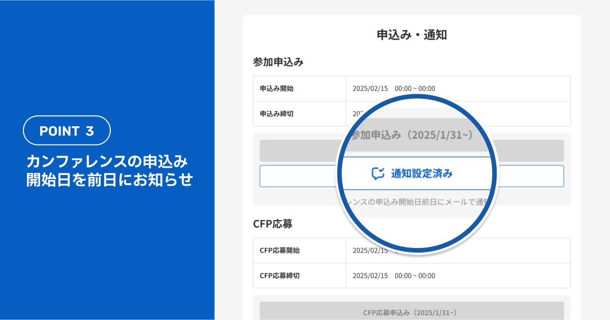 (※4)CFPとは、「Call For Papers (読み方: コールフォーペーパー)」または「Call For Proposal (読み方: コールフォープロポーザル)」の略。ここでいうPapersは、論文という意味合いで、論文やセッション発表を希望するスピーカー募集が行われる際に用いられています。Call for Proposal は、講演やワークショップの企画提案を募集する際に使われます。