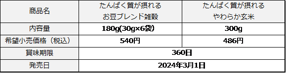 お茶碗1杯当たり『お豆ブレンド雑穀』は6.2g、『やわらか玄米』は7.2gのたんぱく質が摂れ、普段の食事をベースアップすることができます。※1