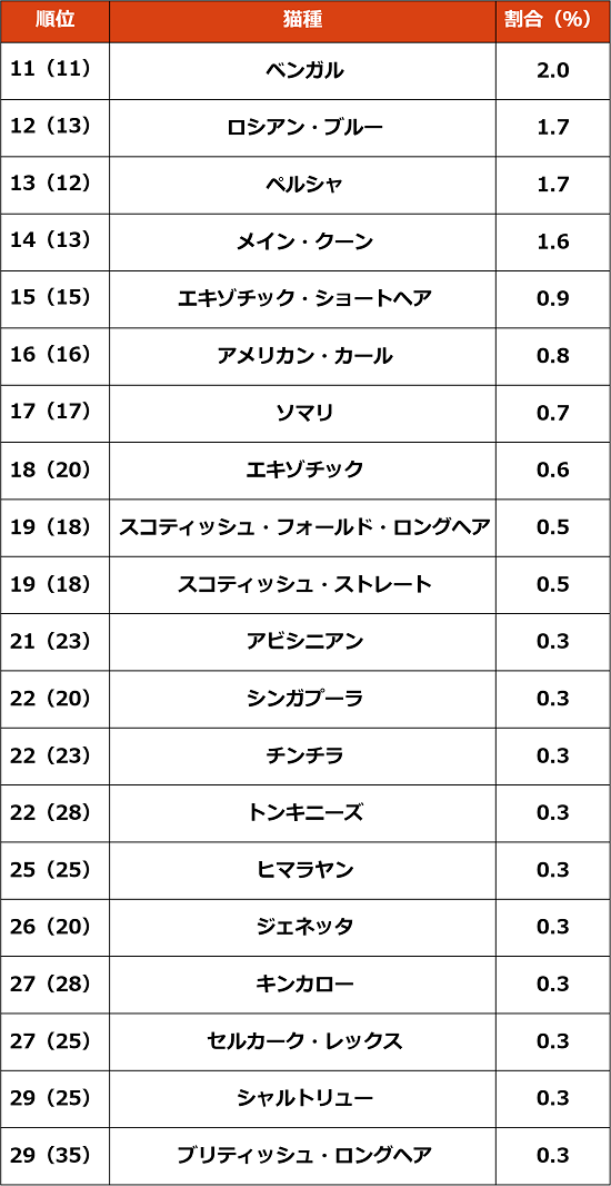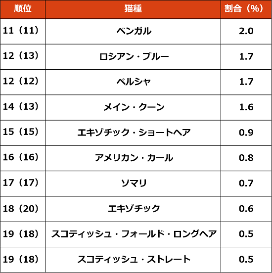 また、犬・猫それぞれの11位以下のランキングは以下の通りです。