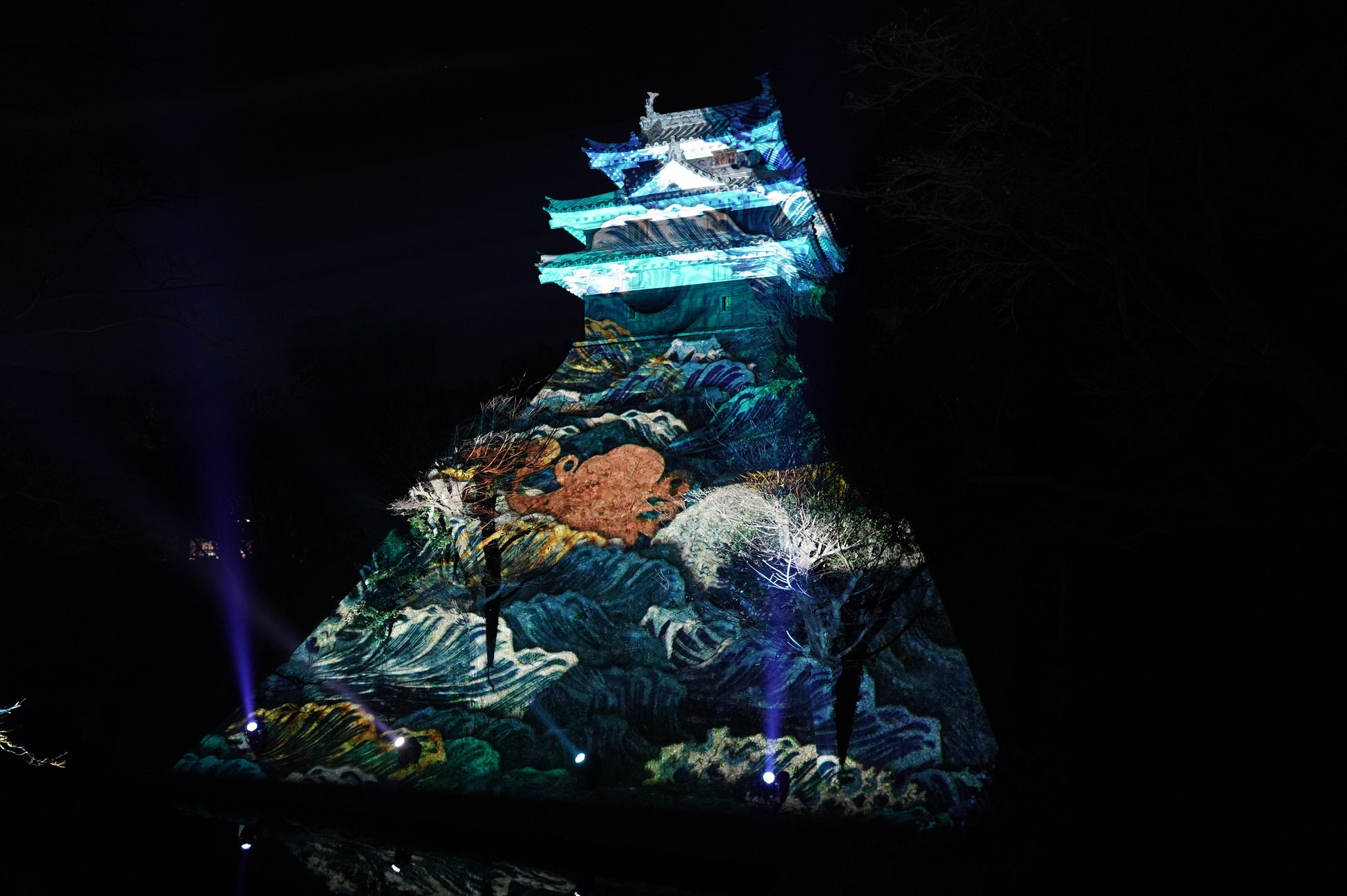 ※本丸丑寅櫓などに約7分間のコンテンツを約3分間のインターミッションをはさんで連続投影します。