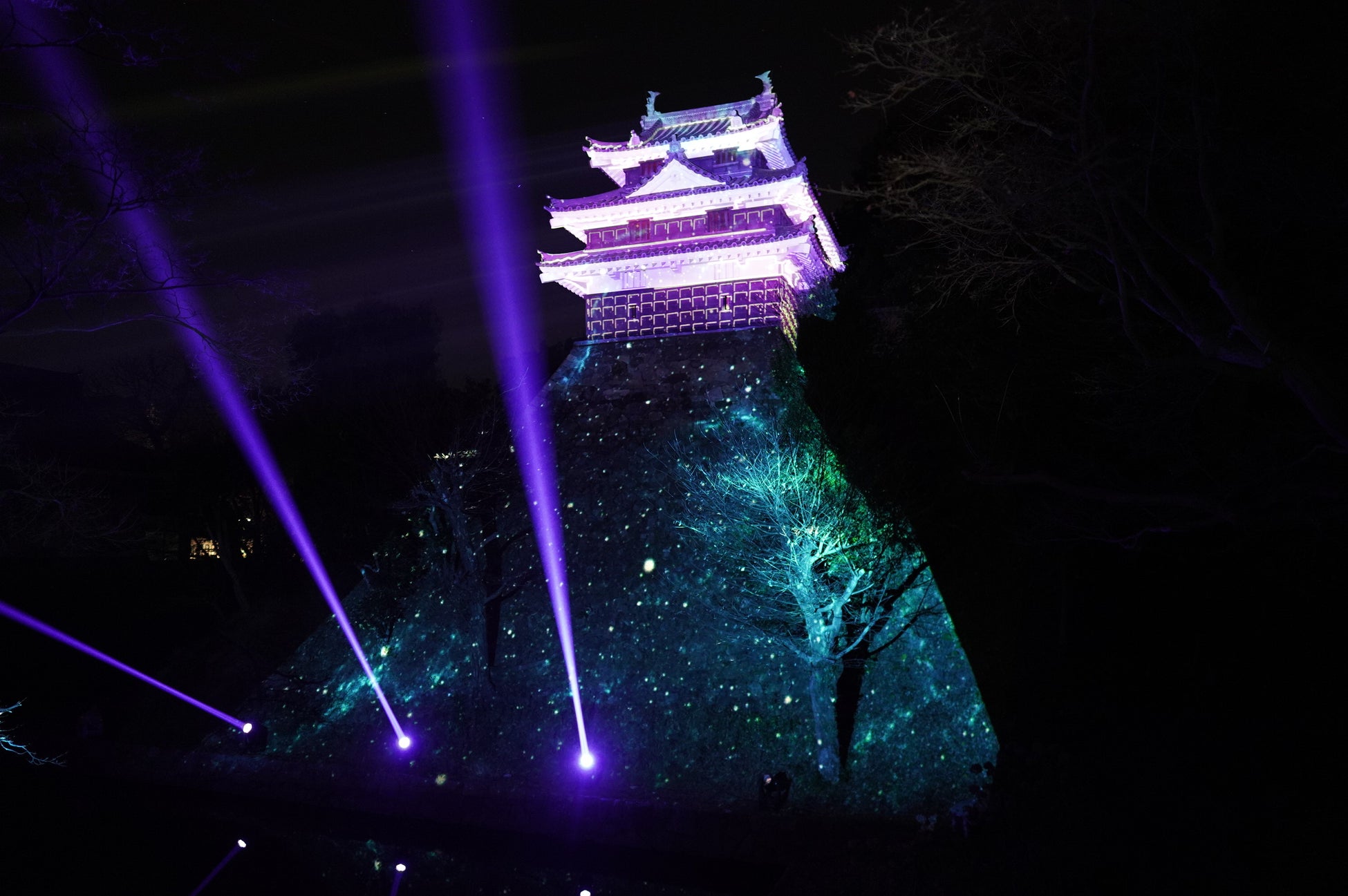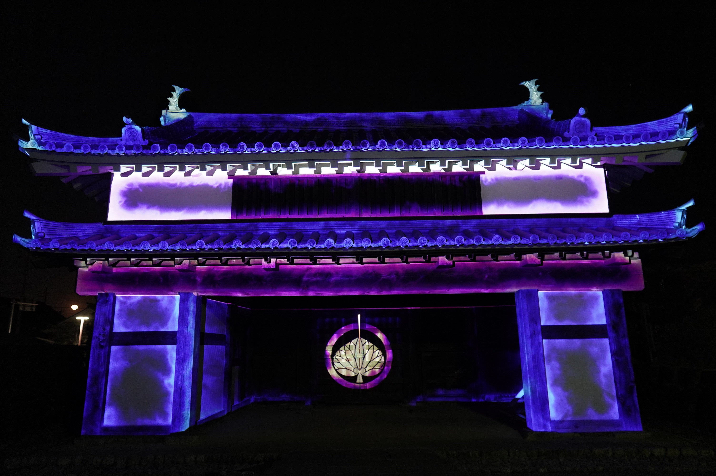 【内容】 西尾市のシンボル・西尾城の本丸丑寅櫓や鍮石門に、西尾市ならではの歴史や文化をテーマにしたデジタルアニメーションや、徳川家康から「鶴城」と命名されたといわれるかつての西尾城にちなみ、鶴や徳川家康ゆかりのモチーフなどのプロジェクションマッピング映像を投影します。