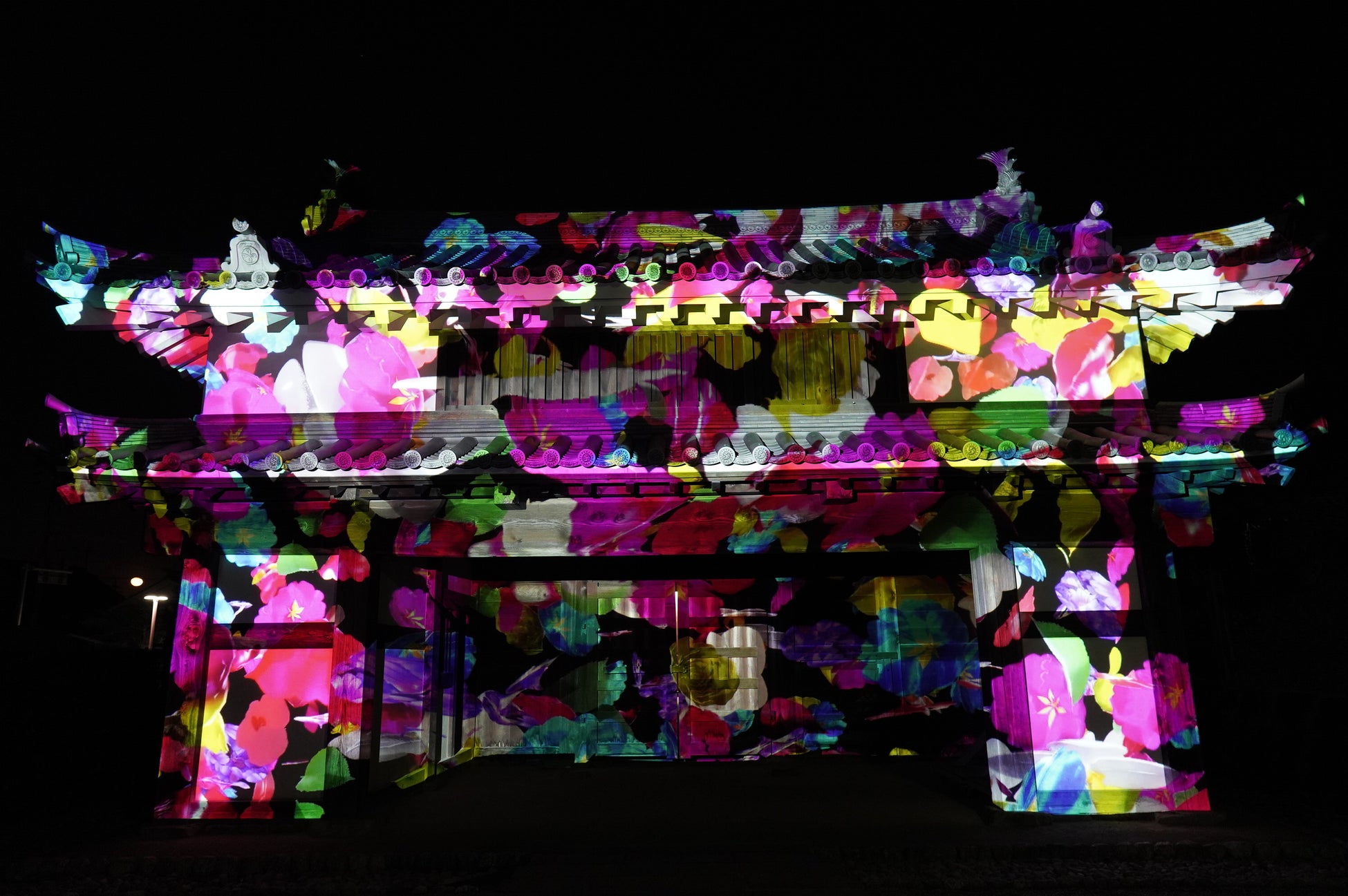 【開催中】一旗プロデュース「西尾城 冬絵巻2023 プロジェクションマッピング」を開催。西尾市のシンボル・西尾城で初めてのプロジェクションマッピング。本丸丑寅櫓や鍮石門に映像を投影。公式写真を公開。