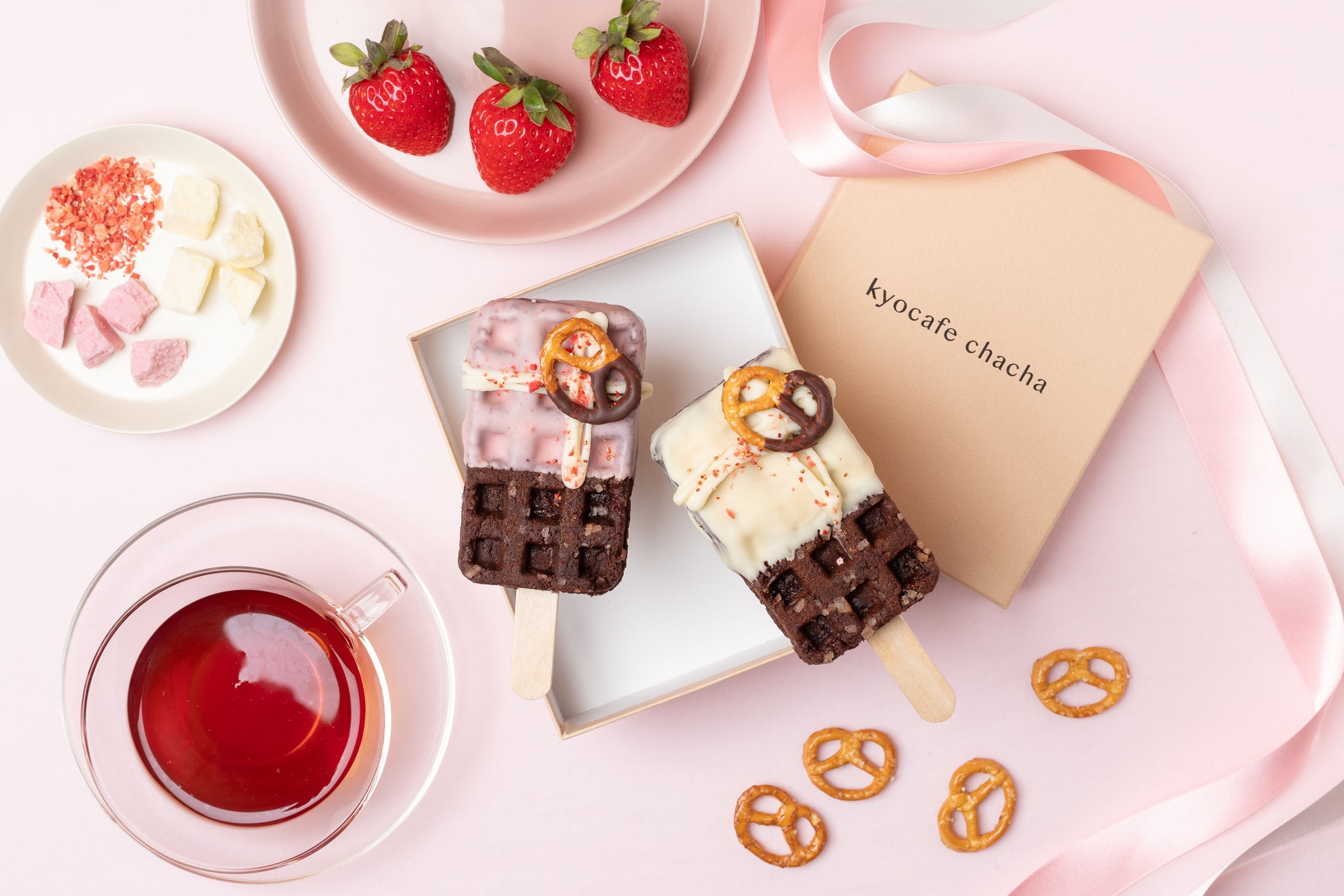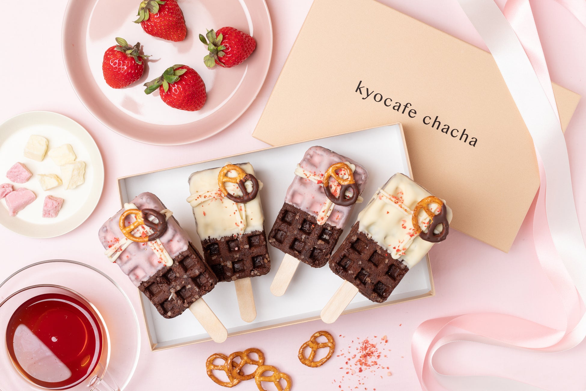 京都での食べ歩きはもちろん、大切な方へのギフトやおうちカフェ、ほっと一息つきたい休憩時間など・・・様々なシーンで、“きゅん”とときめく時間をつくるワンハンドスイーツブランドとして注目されているkyocafe chacha。