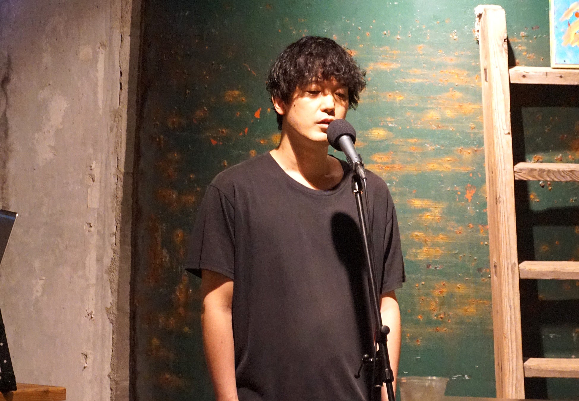 坂城日日氏が詩の朗読をし、Roy Taro氏が詩の世界観をライブアートで表現する。