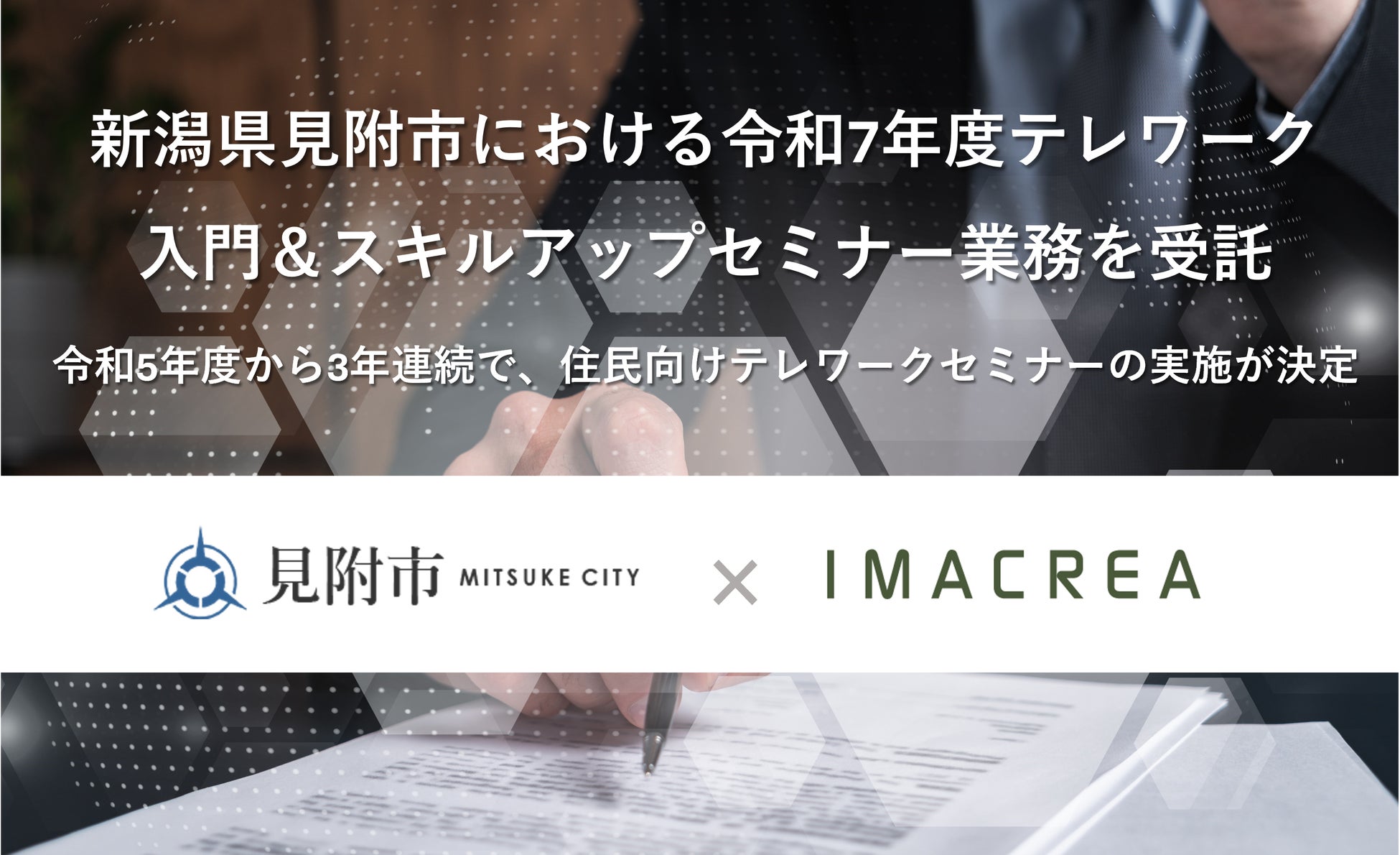 株式会社イマクリエ(本社:東京都港区、代表取締役:鈴木信吾、以下、当社)は、新潟県見附市から、令和7年度テレワーク入門&スキルアップセミナー業務を受託しました。