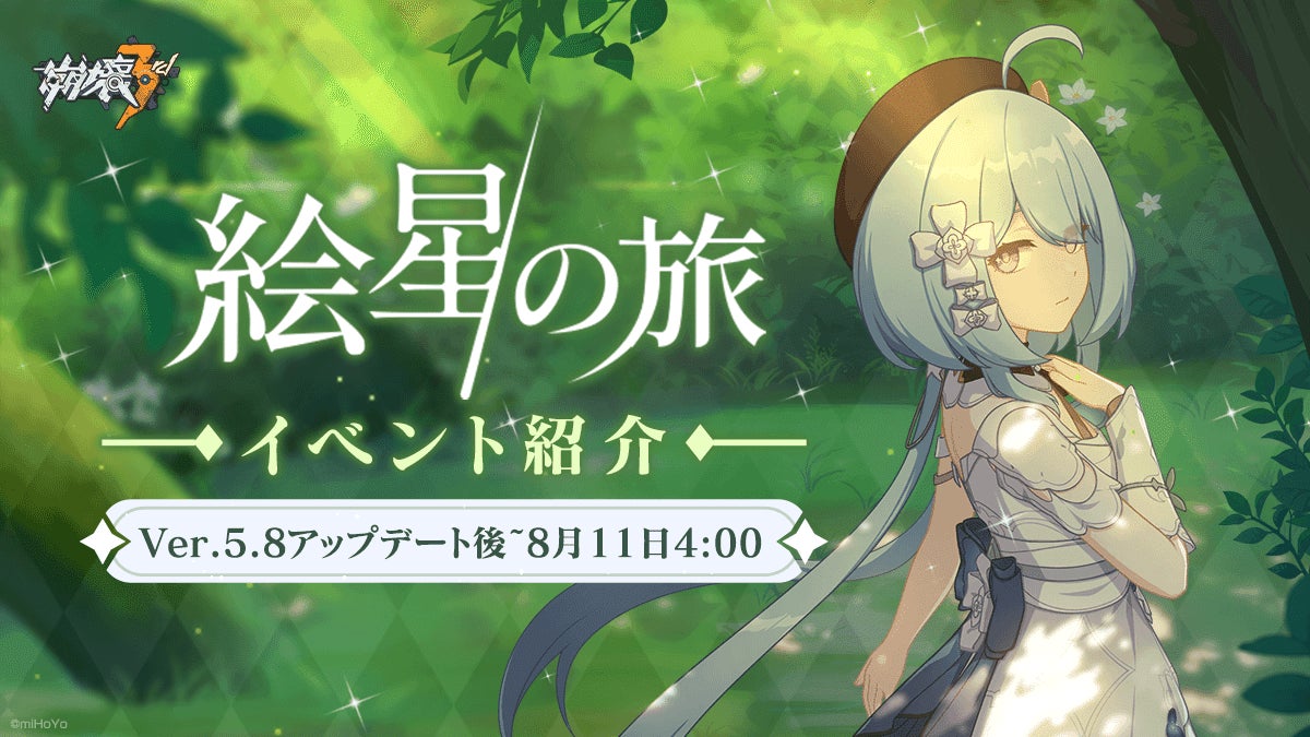 株式会社miHoYo(本社:東京都渋谷区、代表取締役社長:李 承天)は、6月30日(木)に、HoYoverseより配信中のスマートフォン・タブレット端末、Steam向け本格3Dアクションゲーム『崩壊3rd』のVer.5.8アップデートを実施しました。新SP戦乙女「群星・絵世の巻(グレーシュ)」の登場や開催中のイベント情報などをお知らせします。