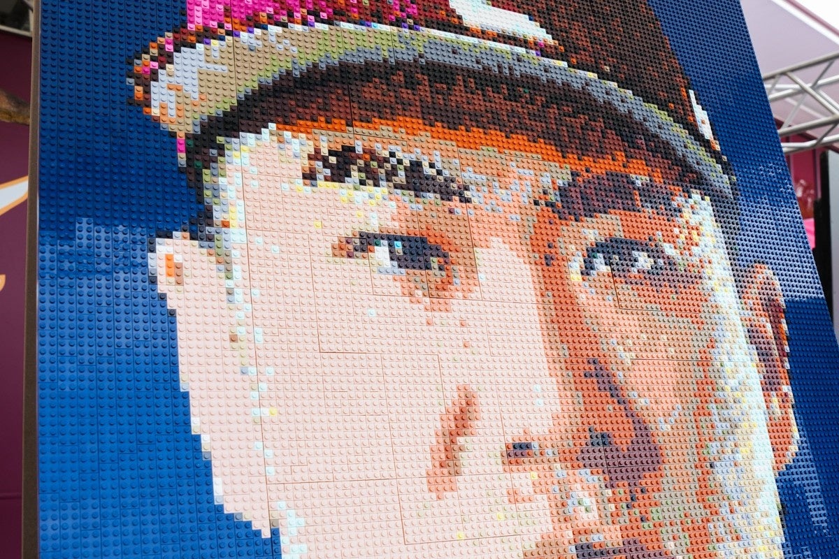 実は、このレゴ ブロックウォールアートはまだ未完成。司会に促され、田中選手自ら最後の2ピースをはめて作品を完成させることに。口と目のピースをはめ、見事作品が完成!