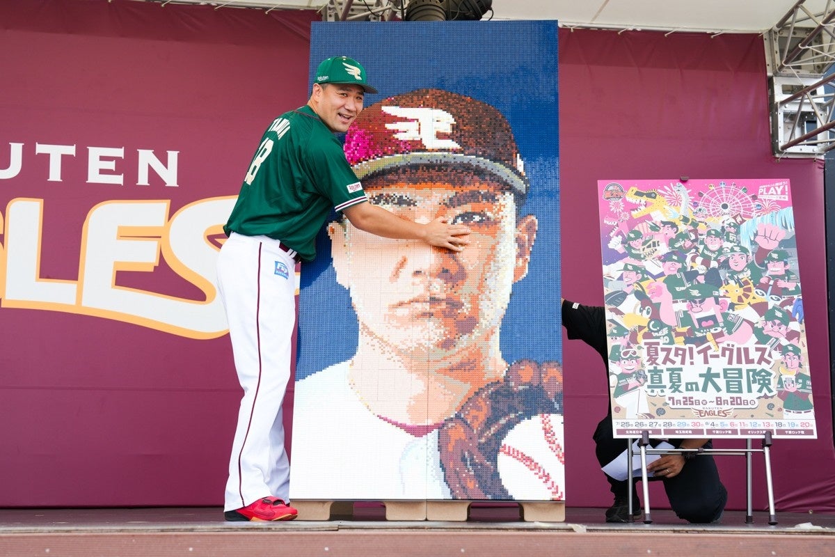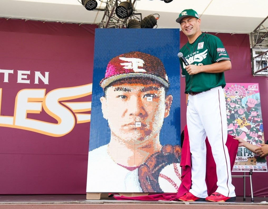 東北楽天ゴールデンイーグルスの石井一久監督、田中将大選手、浅村栄斗選手、島内宏明選手がレゴ®ブロックに⁉田中選手もおもわず「似てますね、レゴ ブロックってすごいですね」