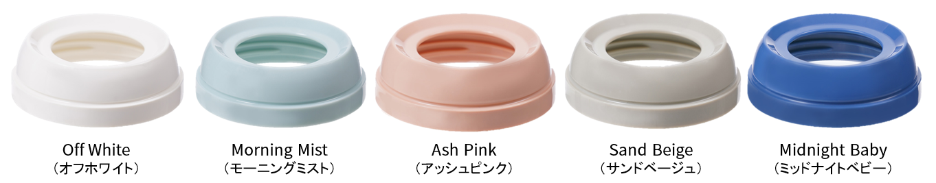 キャップ(全5種):Off White(オフホワイト)、Morning Mist(モーニングミスト)、Ash Pink(アッシュピンク)、Sand Beige(サンドベージュ)、Midnight Baby(ミッドナイトベビー)