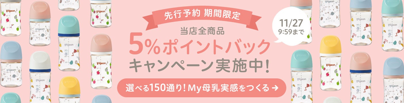 また発売を記念して、11月21日(火)10:00~11月27日(月)9:59に、ピジョン公式オンラインショップのすべての商品を対象にした「全商品5%ポイントバックキャンペーン」を開催いたします。(※4)