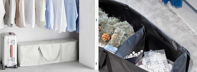 クリスマスツリーやオーナメントをまとめて一括収納。