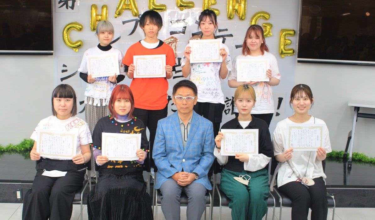 写真:吉原会長と第18回シャンプーコンテスト決勝の入賞者