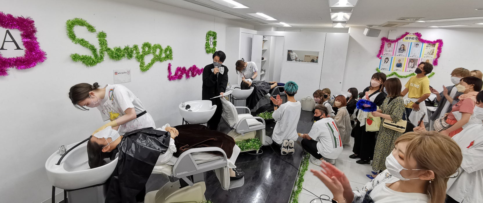 シャンプーコンテストは、数か月前に美容学校を卒業した新入社員の美容師が、まず最初に習得するシャンプー技術にプロ意識を持ち、モチベーション高く日々の仕事に取り組んで欲しいという思いから2004年にはじまった社内イベントです。同期美容師が今まで習った技術を活かし、「シャンプーの達人」の称号を目指して競います。コロナ禍の時期を除いて毎年Ashで開催しており、今年で18回目を迎えました。
