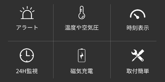 【空気圧や温度監視・時刻表示・防水防塵・2way充電】