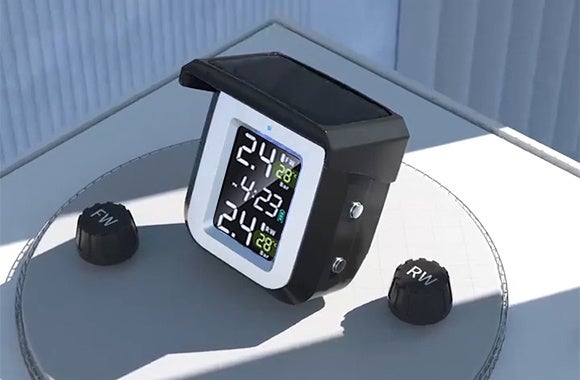 モニターに表示されている数値を確認するだけでタイヤの状態が分かる空気圧計「Tire Go」。