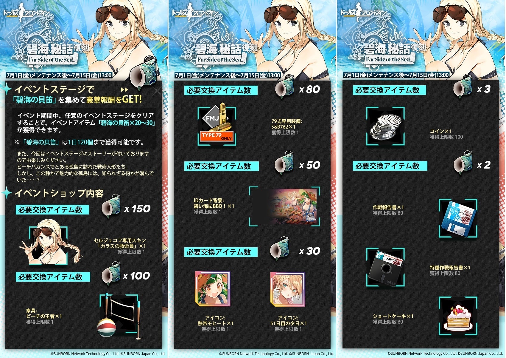 - ■水着スキンや専用装備等の報酬をGETできるイベント「碧海秘話」を復刻開催!