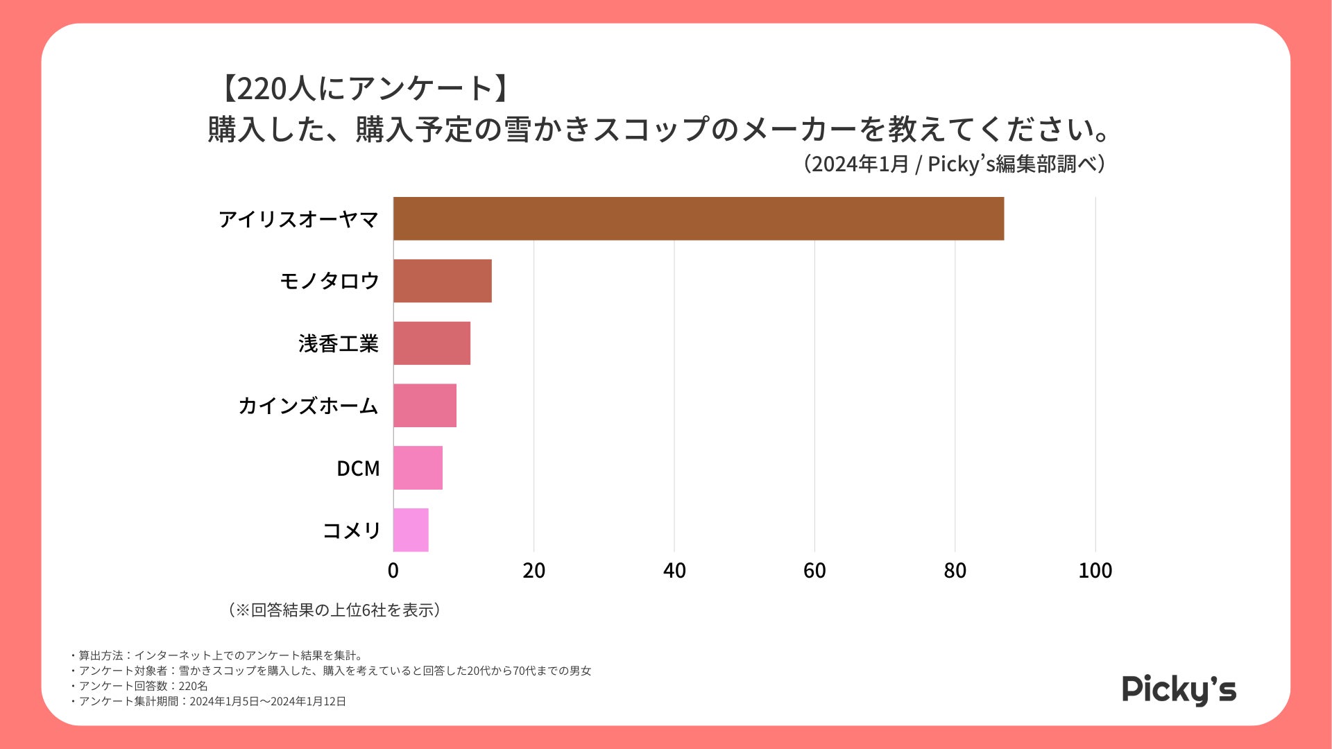 「Picky’s」は、インターネットショッピングにおいて、購入前に試せない・選ぶべきものがわからないという課題の解決を目標に、あらゆる商品のおすすめランキングや検証レビューを紹介するサイトです。このたびPicky’s(https://rentry.jp/note/)では、雪かきスコップについてインターネット上でアンケート調査を行いましたので発表いたします。