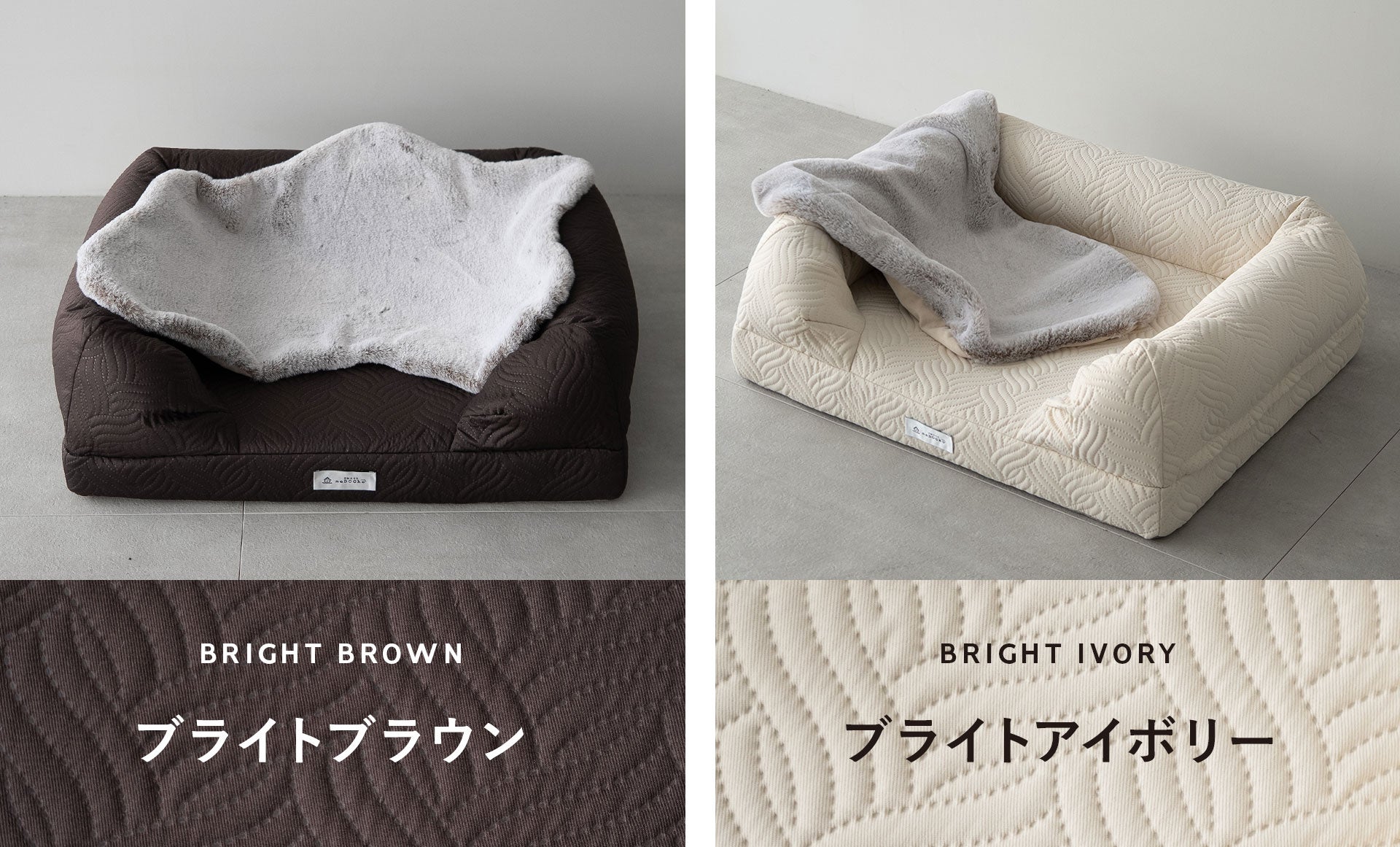 上質で控えめなツヤ感のある2カラーは、暮らしに自然と溶け込みながら、さりげなく上品な存在感を放ちます。愛犬の毛色やご自宅のインテリアに合わせてお選びいただけます。