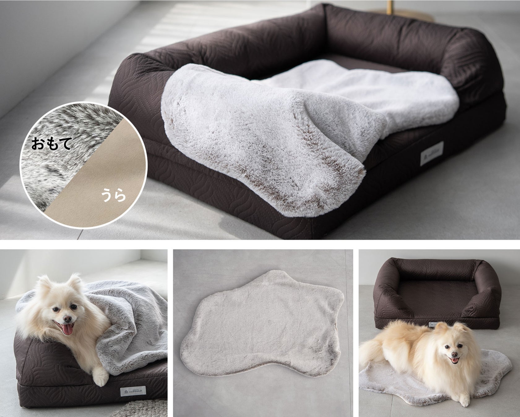 付属のブランケットは、100種類以上の生地から厳選し、人間用ブランケットでもめったに使われない最高クラスの肌触りを誇る超高密度のエコファー素材を使用。格別ななめらかさ、ずっと撫でていたくなる触感に、愛犬もうっとりとくつろげます。