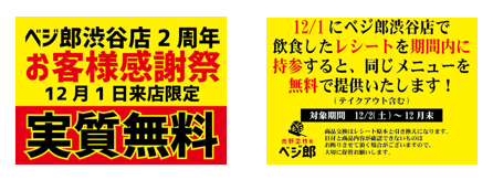 『肉野菜炒め ベジ郎渋谷総本店』2周年記念 お客様感謝祭