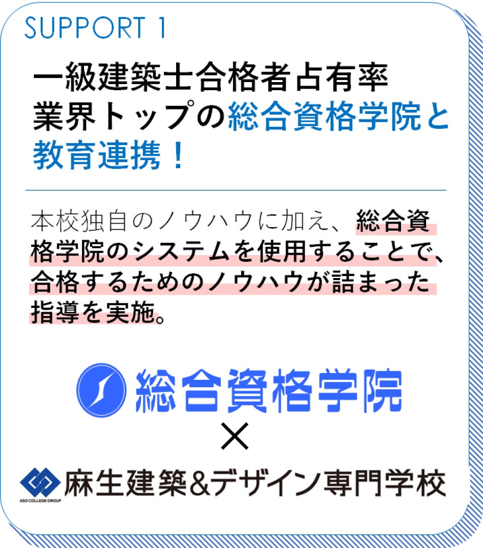 今年度より麻生建築&デザイン専門学校では、これまで高い合格率を誇ってきた二級建築士試験対策のノウハウを活かし、「一級建築士コース」を新設しました。