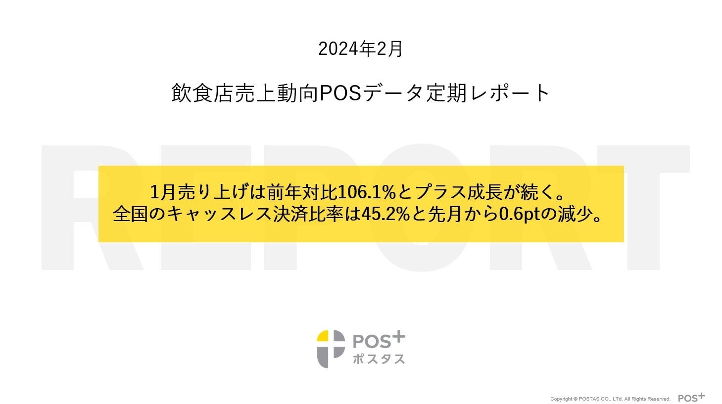 クラウド型モバイルPOSレジ「POS+(ポスタス)」飲食店売上動向レポート2024年2月