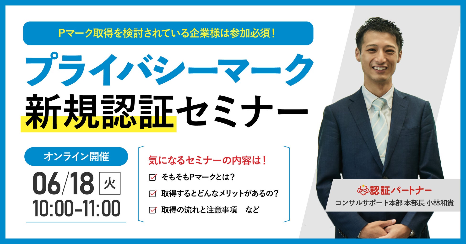 【無料ウェビナー】『プライバシーマーク(Pマーク)新規認証セミナー』6/18(火)10:00-11:00開催
