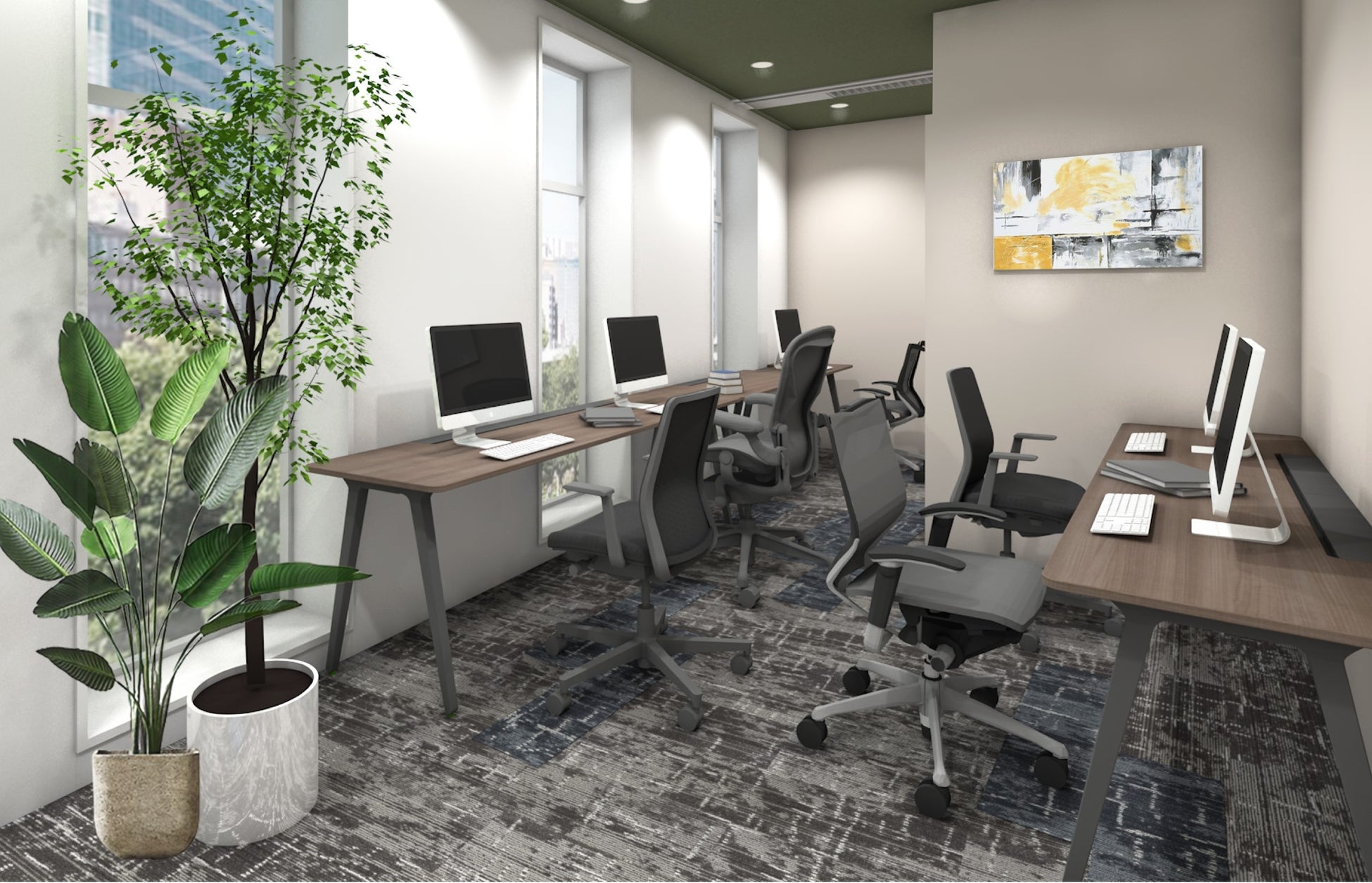 シェアオフィスとして、3名~6名用の個室を6部屋、居室内に会議室やブースなども設置した約150㎡の1部屋、計7部屋を用意しました。