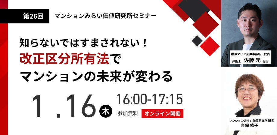 『改正区分所有法でマンションの未来が変わる』1月16日(木) 無料WEBセミナー(マンションみらい価値研究所主催)